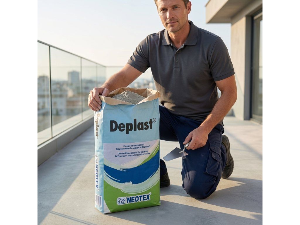 Az N-Thermon® rendszer részeként a Deplast® vakolat első rétegét az N-Thermon® alapozó felhordásától számított 24 óra elteltével vigye fel fogazott simító segítségével, és ezzel egyidejűleg sima simítóval dolgozza bele a lúgálló N-Thermon® Mesh 90gr üvegszálas hálót is. 12 óra elteltével vigyen fel a felületre egy második réteg Deplast® vakolatot. A munka befejezése a felület vakolatsimítóval történő elsimításával történik, amit akkkor végezzen el, amikor a habarcs elkezd szilárdulni.