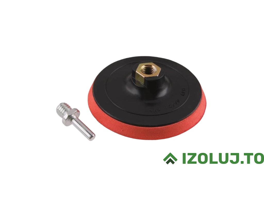 Csiszolókorong tartó M14-es menettel, 8mm-es szárral, tépőzáras rögzítéssel, a tartó átmérője 125mm.