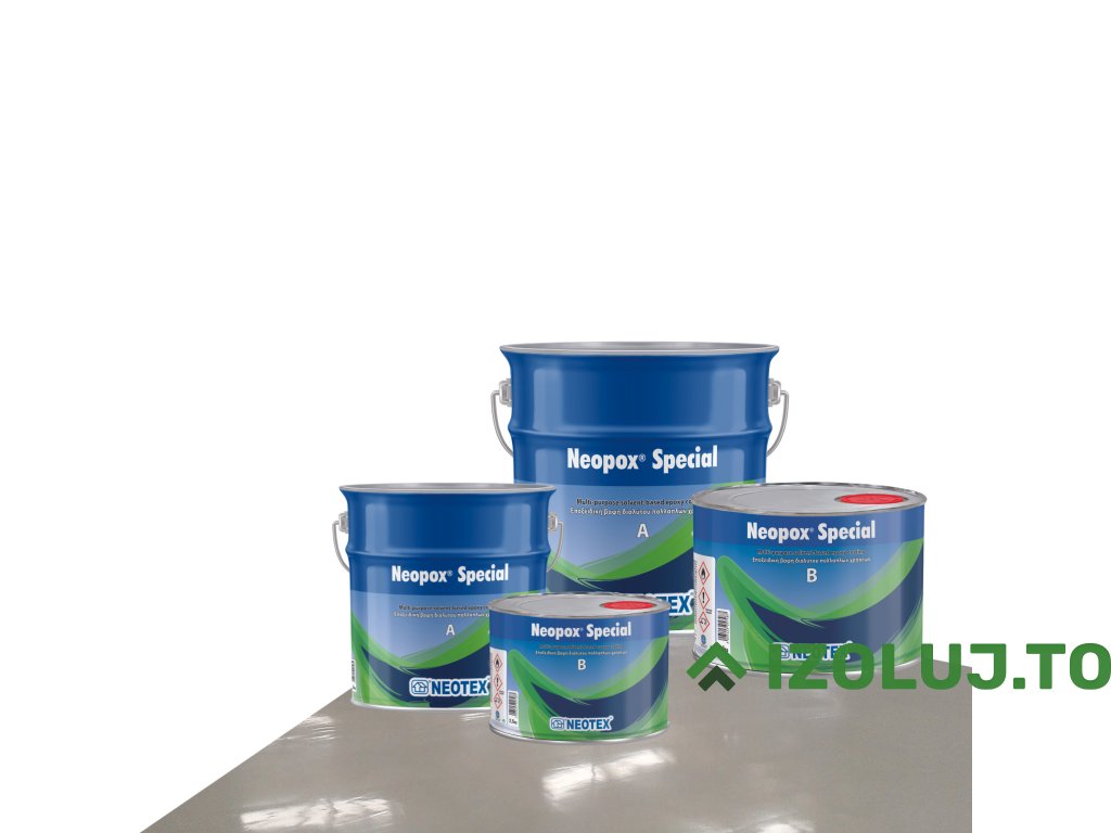Az alapozó száradása után ajánlott felvinni a Neotex® 1021 oldószerrel 8 m/m %-ban hígított Neopox® Special első rétegét hengerrel, ecsettel vagy airless szórással. A második réteget ugyanígy kell felvinni ~24 órával az első réteg felvitele után (a légköri viszonyoktól is függően), 4-8 tömegszázalékban hígítva Neotex® 1021 oldószerrel. Minden további réteghez a Neopox® Special-t 4 tömegszázalékban hígítjuk Neotex® 1021 oldószerrel. Keverjük össze a két, A és B komponenst előre meghatározott arányban (75A : 25B m/m), majd az oldószer hozzáadása után, a felhordás során 3-5 percig keverjük az elegyet alacsony fordulatszámú elektromos keverővel. Fontos, hogy a doboz alján és falainál is alaposan átkeverjük, hogy a fixáló (B komponens) egyenletesen eloszoljon.