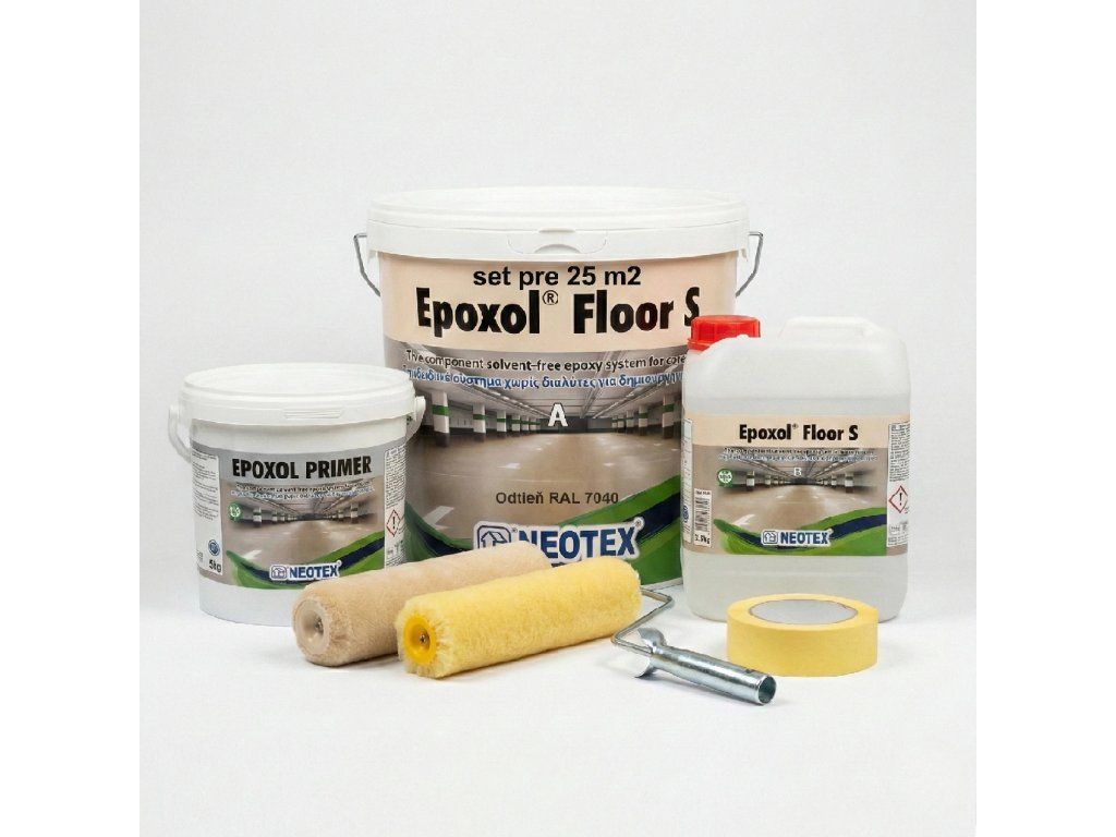 - Epoxol Floor S (13,5 kg) – fő bevonat magas olaj-, benzin-, vegyi anyag- és mechanikai igénybevétellel szembeni ellenállással.